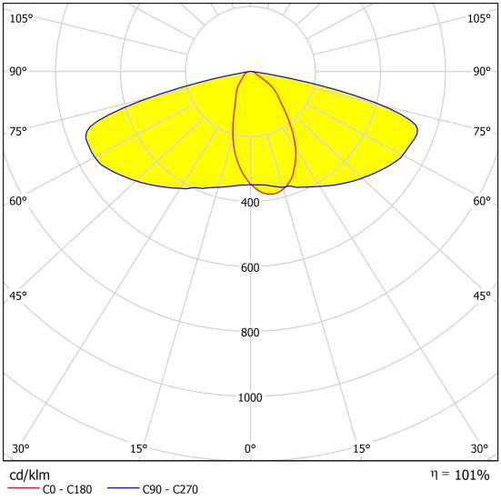 Professional light distribution, illuminates 400 m² from 6m height