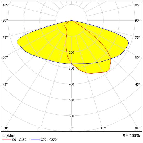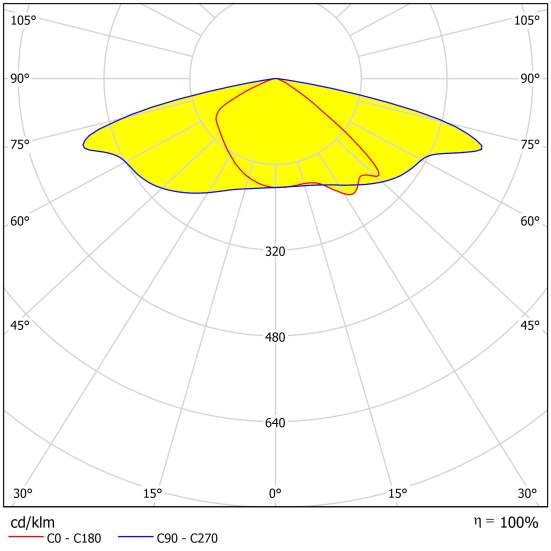 Professional light distribution, illuminates 400 m² from 6m height